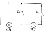 解答:解:只闭合S1时,红绿灯都亮,闭合S1、S2时,红灯亮,绿灯不亮,