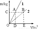 由E点坐标大于D点坐标可知相同质量的两种物质,2的体积较大.