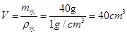 溢出水的体积等于金属颗粒的体积![]()