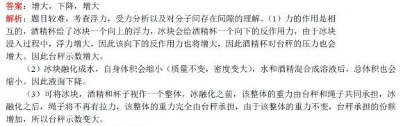 (已知:冰的密度为0. 9 × 103 kg/m3,酒精的密度为0. 8 × 103 kg/ m3;整个过程中无液体溢出。)