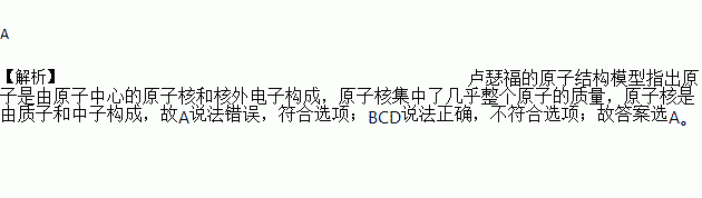 关于卢瑟福提出的原子结构的行星模型,下列说法错误的是