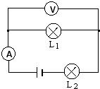 如图所示,在图○中填上适当的电压表或电流表符号,使灯泡L1、L2构成正确的串联电路.