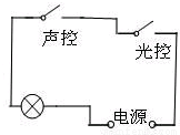 【答案】分析:由题意可知,通过声光控开关可以使灯泡只有在晚上有声音时,灯泡才会发光;根据开关串联或并联的作用分析开关的连接方式,然后作出电路图.