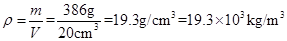 有一金属块质量是386g,体积是20cm3,这种金属的密度是___________kg/m3;如果将它截去一半,剩余部分的密度是______kg/m3.