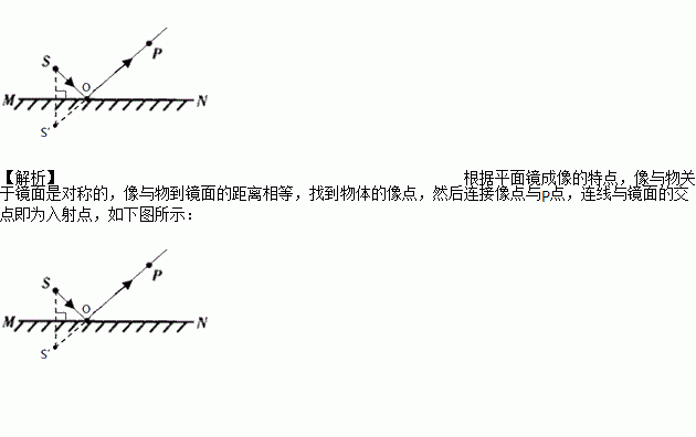 如图所示,从S点发出的一条光线,经平面镜反射后,其反射光线恰好通过P点.请你作出这条入射光线并完成光路图.