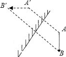 解:先作出端点A、B关于平面镜的对称点A′、B′,用虚线连接A′、B′,即为物AB在平面镜中所成的像,如图所示: