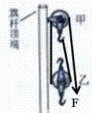 羚羚是学校升旗手,她想利用滑轮组来升旗.若将国旗挂在乙轮下的挂钩上,则应怎样在滑轮上绕绳,既可将国旗升上旗杆,又可省力?请在图中画出你的绕法.