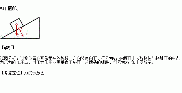 请在图中画出静止在斜面上物体的重力和物体对斜面的压力的示意图.