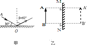 (1)根据图甲中所给出的平面镜的一条入射光线,画出它的反射光线,并标出反射角β.