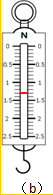 (2)图(b)中弹簧测力计的分度值为0.1N,图(c)中弹簧测力计的分度值为0.2N,因此,选择分度值较小的图(b)中弹簧测力计,1.3N应在1N以下第三个格的位置;如图所示.