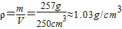 解答:解:(1)从包装箱可看出,牛奶的体积为250毫升,即250cm3;质量为257克