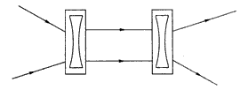 在图中画出了一束光线通过两个透镜前后的传播方向,试在图中长方形框中填上适当类型的透镜.