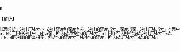 如图,关于a、b、c、d四点处液体产生的压强大小的比较,其中正确的是(已知ρ盐水>ρ纯净水)