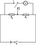 分析:根据题目中所给的实验器材,只有电压表没有电流表,但有定值电阻,这样就可以让待测电阻与定值电阻串联,根据串联电路的电流相等,就可以知道通过待测电阻的电流,让电压表先后测出总电压和待测电阻的电压,结合欧姆定律进行求解.