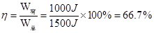 额外功W额=W总-W有用=1500J-1000J=500J,