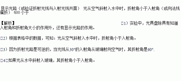 (1)ʵÑéÖУ¬¹â¾ßÅ̳ý¾ßÓÐÖªµÀÈëÉä½ÇºÍÕÛÉä½Ç´óСµÄ×÷ÓÃÍ⣬»¹ÓÐ____×÷Ó㨽ö˵һÌõ£©¡£