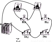 解答:解:按电流流向法,从电源的正极出发,一支经灯泡EL1、开关SA1、开关SA2回到负极;