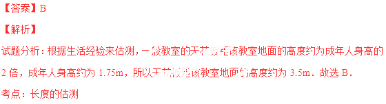 以下数据,最接近一间普通教室的天花板距该教室地面的高度的是 ( )