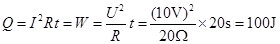 将阻值为20Ω的电阻丝接在电压为10V的电源两端,通电20s产生的热量为___J。