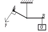 图是用软绳悬挂的杠杆,请在A点画出能使杠杆在图示位置平衡的最小拉力的示意图。![]()