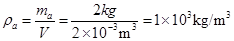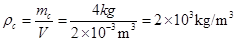 解析试题分析:如图所示,质量与体积的图像是一条通过原点的直线,在图像中,横坐标表示质量,纵坐标表示体积,取a,b,c的体积都为2×10-3m3时,此时三者体积相同,但mc="4kg," mb="2kg," ma=2kg,,根据