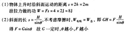 (2)若斜面的高度H一定,倾角θ可以改变,试推导:在不考虑摩擦时,用平行于斜面的拉力F将重为G的物体匀速拉上斜面顶端.θ越小,F越小。![]()