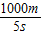 【答案】分析:已知s=1000m,t=5s,根据速度公式v=
