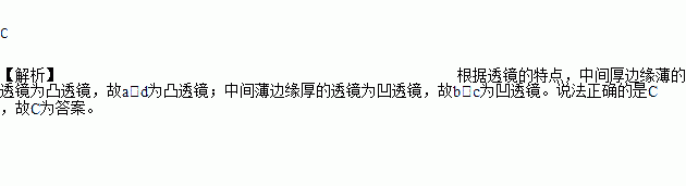 A. a、c均为凸透镜 B. a为凸透镜,d为凹透镜