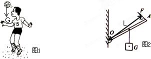 在图1所示,画出足球所受重力G的示意图,在图2中画出力F的力臂.