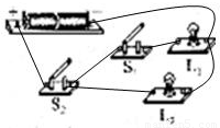 将图中的各器材连成电路.要求:L1灯和L2灯并联;开关S1只控制L1灯,开关S2控制L1灯和L2灯.
