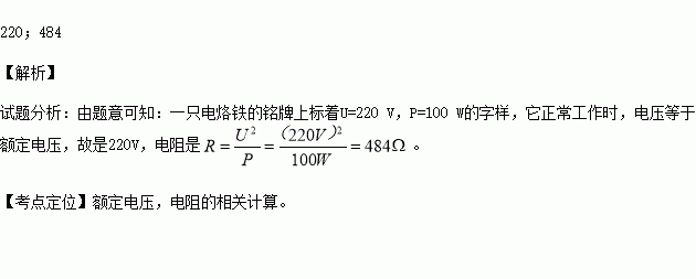 一只电烙铁的铭牌上标着“220 100 W”的字样,它正常工作时,电压是 V,电阻是 Ω。