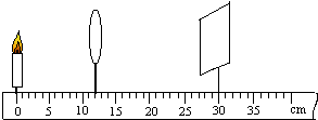 解答:解:(1)如图蜡烛在凸透镜的一倍焦距和二倍焦距之间,成倒立、放大的实像,像距在二倍焦距以外,所以光屏在28cm刻度以外的位置.如图.