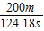 解答:解:我国选手刘子歌的游泳时间t=124.18s,