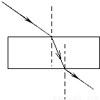 注意发生两次折射,第二次折射的光线与入射光线平行,如图: