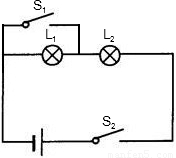 解答:解:从电源正极开始依次经过开关S2、灯L2、L1回到电源负极,然后将开关S1并联在灯L1两端.如图所示: