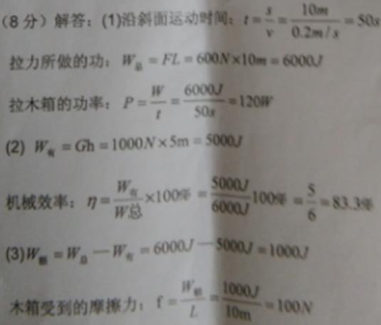 00N的拉力使木箱A以v=0.2m/s的速度匀速从斜面底端拉到斜面顶端。求: