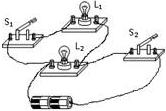 分析:根据实物电路的连接方法,从电源正极开始,将两灯并联,开关S1控制电灯L1,S2作为总开关,最后回到电源负极.