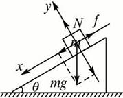 如图所示,斜面倾角为θ,质量为m的物体沿斜面匀速下滑,物体与斜面的动摩擦因数为μ,求物体受到的支持力和摩擦力。