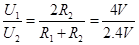 解析试题分析:由图可知,四个电阻是串联的。电压表V1测量的是电阻R1和R2两端的电压,电压表V2测量的是电阻R2和R4两端的电压,已知R1=2Ω,R3=5Ω,R2=R4,电压表读数U1=2.4V,U2=4V,