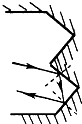 自行车尾灯的部分结构如图所示,请在图上画出所给射入光线经两个反射面反射的光路.