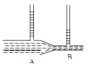 小明同学将图所示的玻璃管装置接到水流稳定的自来水管上,当水在玻璃管中流动时,请画出两个竖直管中液面的位置。