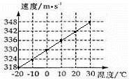 声音传播的速度和温度有关,下表是空气中声速随温度变化的数据:| 空气温度/℃ | -20 | -10 | 10 | 20 | 30 | |