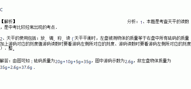 一名学生称某物块时,右盘砝码及游码如图所示时,天平平衡,则下列数据中记录正确的是( )。