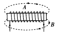 20、有一通电螺线管,电流方向如图所示,请分别画出经过A点和B点的两条磁感线.