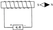 (3)根据通电螺线管旁的小磁针的N、S极指向,在图中标出通电螺线管的N、S极和电源的正、负极.
