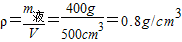 答:瓶内液体的质量为400g,液体的密度为0.8g/cm3.