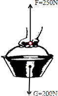 如图所示,一个人用250N的力竖直向上提起一个重力为200N的水桶,用力的示意图将水桶受到的两个力F和G表示出来.