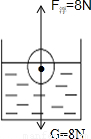 ∴F浮=G=8N,过重心作竖直向下的重力和竖直向上的浮力,其大小都为8N.如图所示:
