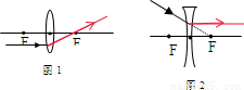 点评:本题主要考查凸透镜、凹透镜的三条特殊光线,要求熟练掌握,是中考作图常考的内容.