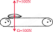 解答:解:大米袋与传送带一起做匀速直线运动,处于平衡状态,对米袋受力分析:在竖直方向上,米袋受竖直向下的重力G,竖直向上的支持力F,这两个力是一对平衡力,F=G=500N,米袋受力示意图如图所示: